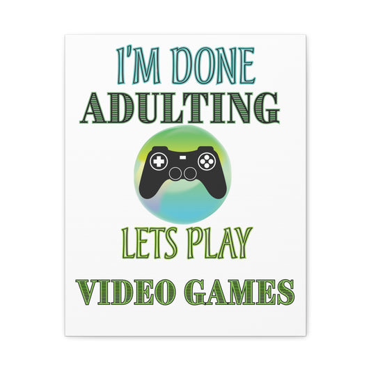 I'm Done Adulting, Lets Play Video Games- Canvas Print